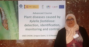 A l’occasion de son séjour en Espagne, elle a pris part au cours approfondi « Les maladies des végétaux causées par Xylella fastidiosa : Détection, identification, surveillance et contrôle ». Ce cours qui a eu lieu à l’Institut Agronomique Méditerranéen de Zaragoza du 12 au 16 novembre 2018 a été conjointement organisé par le CIHEAM–IAMZ, le Ministère de l’Agriculture, de la Pêche et de l’Alimentation de l’Espagne et POnTE “Pests Organisms Threatening Europe”, et le projet CURE-XF “Capacity Building and Raising Awareness in Europe and in Third Countries to Cope with Xylella fastidiosa”.