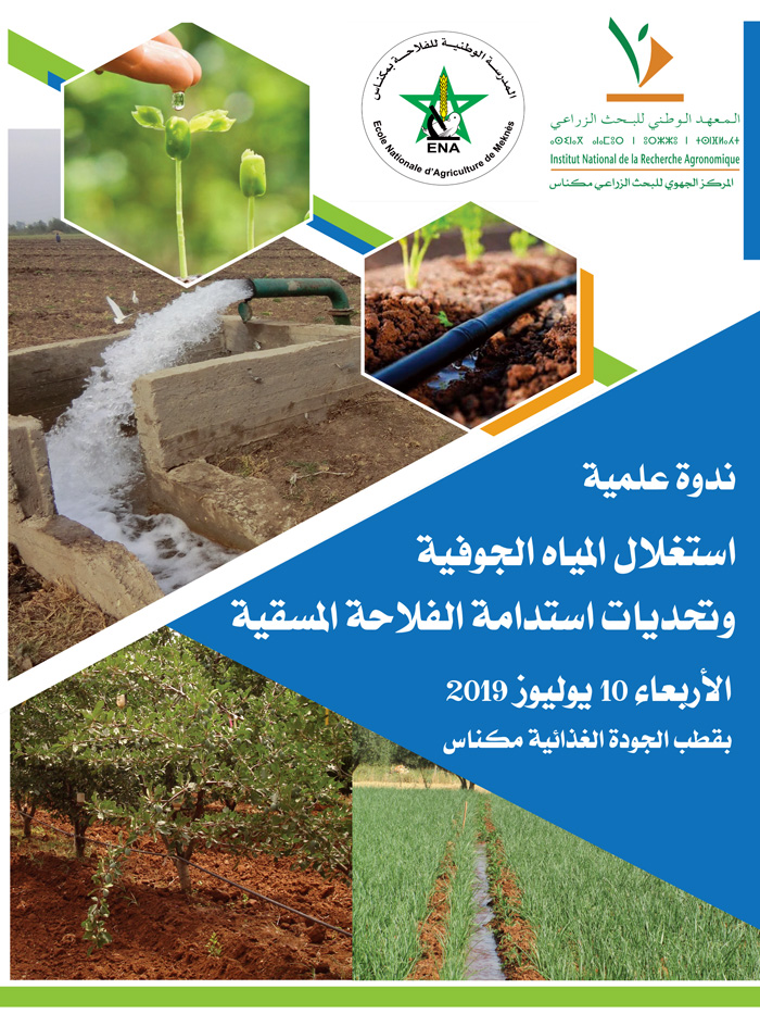 أقيمت الندوة العلمية حول موضوع « استغلال المياه الجوفية وتحديات استدامة الفلاحة المسقية » يوم الأربعاء 10 يوليوز 2019 بقطب الجودة الغذائية مكناس بتنظيم مشترك من المدرسة الوطنية للفلاحة بمكناس والمركز الجهوي للبحث الزراعي مكناس.