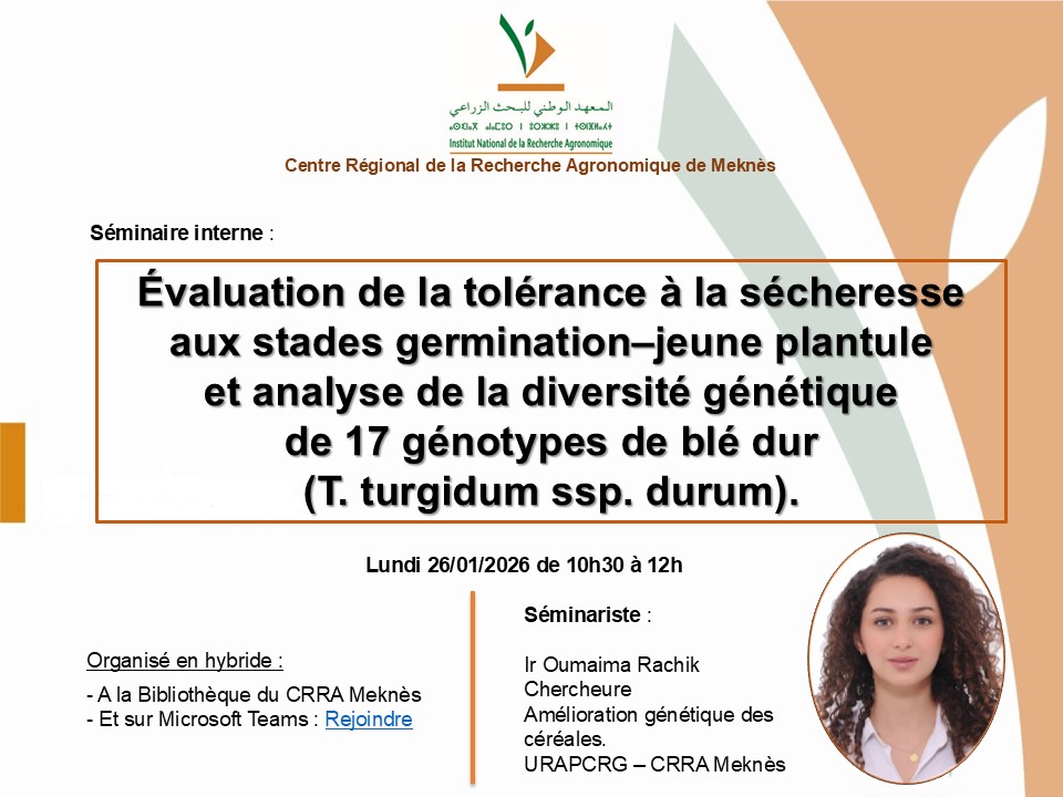 1 : INRA CRRA Meknès – 2 : USMBA FPD Taza – 3 : USMBA FS Fès – 4 : UAE FST Tanger.